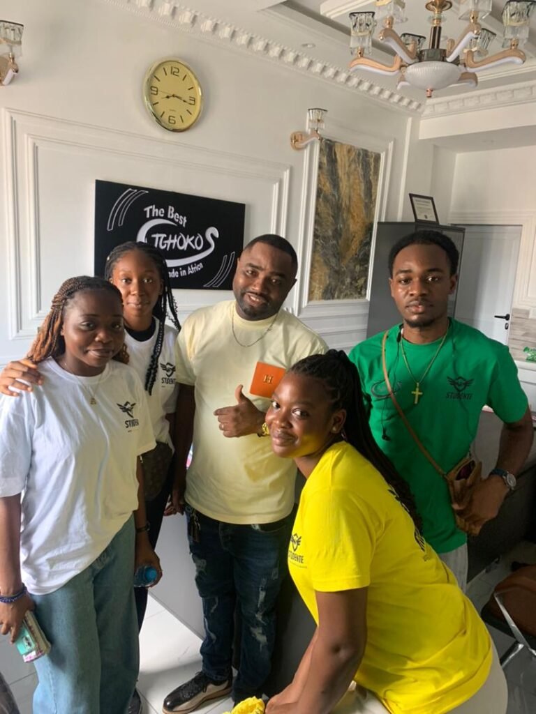 Le 28 novembre 2025, les membres de STUDENTE se sont rendus chez Tchokoss pour une rencontre stratégique visant à établir un partenariat majeur. Cette visite marque une étape importante dans le développement de notre concours entrepreneuriat. L'objectif de cette rencontre était de présenter notre projet de concours entrepreneuriat et de proposer à Tchokoss de devenir l'un des sponsors majeurs de cette compétition qui promet de révéler les talents entrepreneuriaux de notre communauté étudiante.